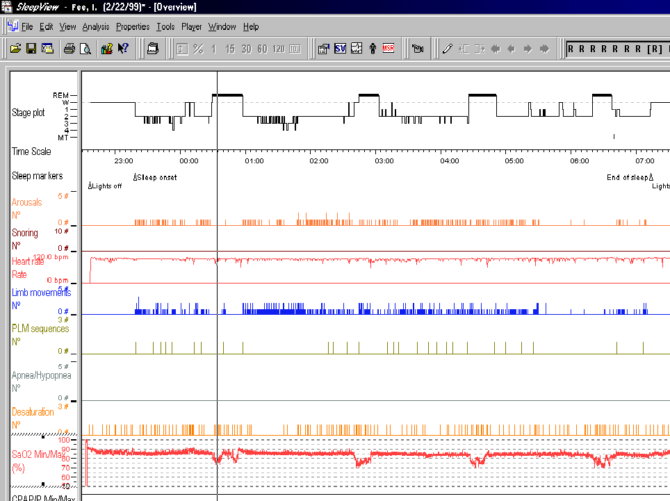 Information is gathered from all leads and fed into a computer and outputted as a series of waveform tracings which enable the Sleep Consultant to visualize the various waveforms, assign a score for the test, and assist in the diagnostic process.
